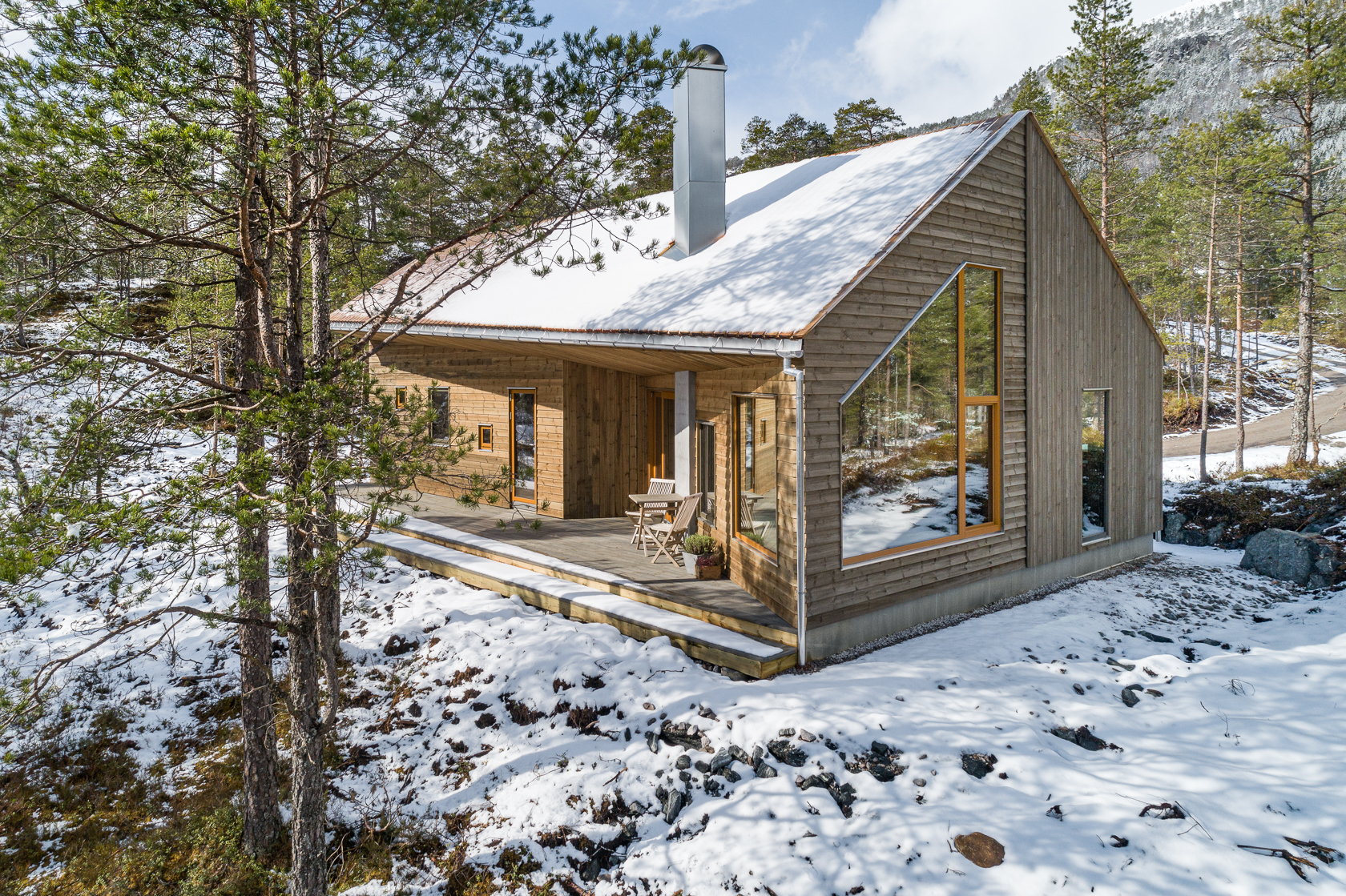 Her ser du eit lite utvalg av våre hytteprosjekter, alle tilpassa kunden sine ønsker.