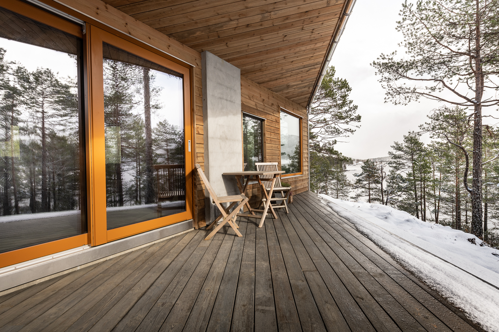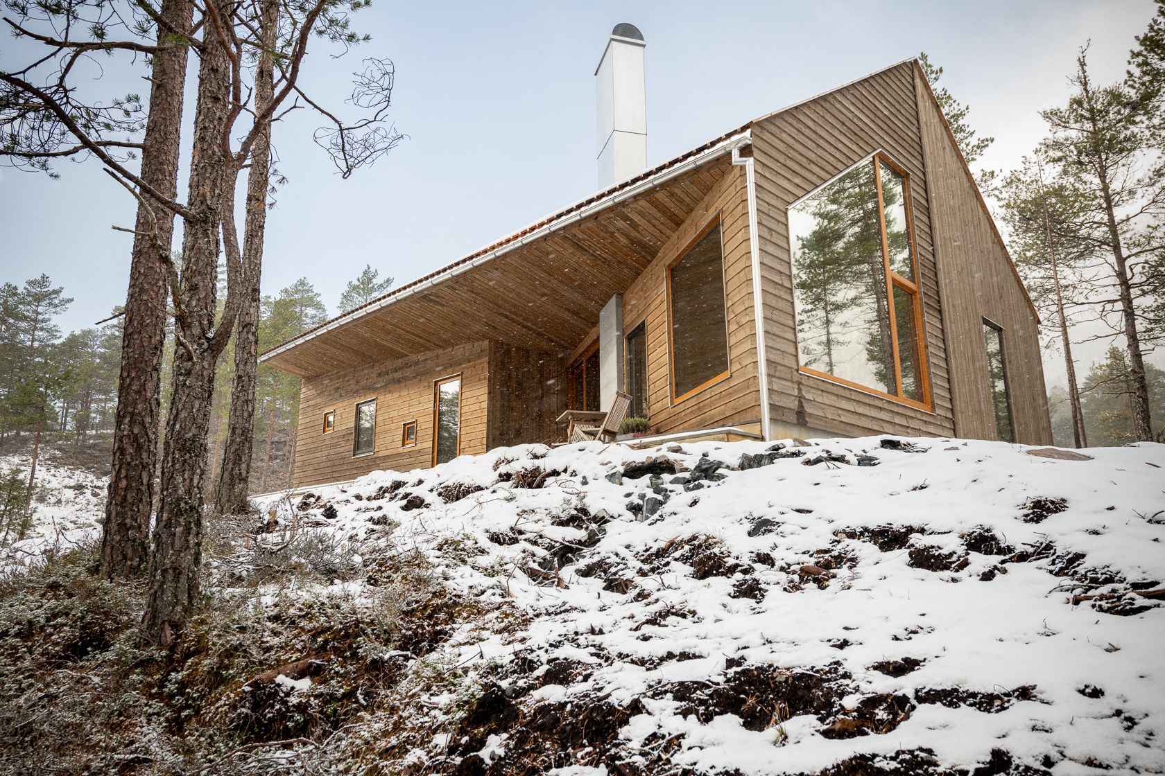 Alle våre hytter følgjer krava i TEK 17, men dei kan også ytterlegare tilpassast påkjenningar i ver og klima på høgfjellet og ved sjøen. For at du skal få ei lunare og varmare hytte bruker vi då dobbel utvendig vindsperre på ytterveggane. For minimalt med vidare vedlikehold, kan vi levere vindu med aluminiumsbeslag.
