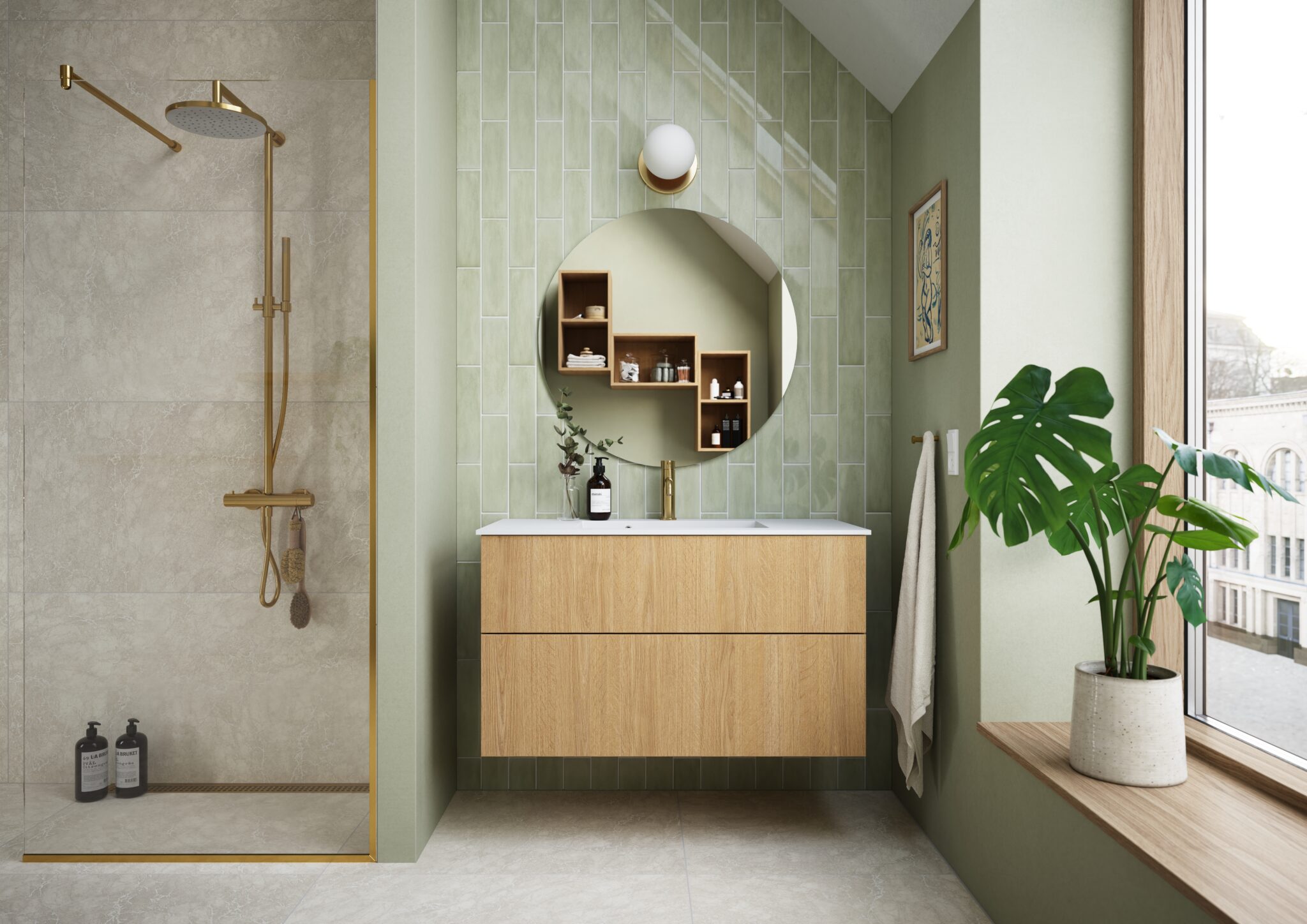 Som det naturlege produktet eikefinér er, vil frontane med tida endre uttrykk avhengig av lysinnstrømninga. Du vil derfor oppdage at Mente-badet ditt får enda meir glød og nordisk sjarm. Både med åra og med årringane.